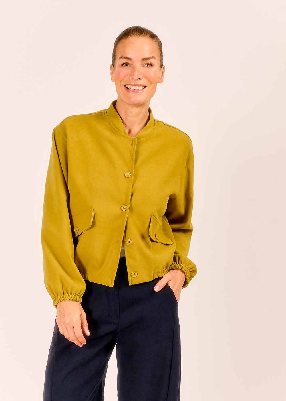 Dieser lässig geschnittene Bomberino in trendigen Verde bringt moderne Leichtigkeit in deinen Look. Der raffinierte Saum macht ihn zum echten Statement-Piece für alle, die es sportlich und modisch zugleich lieben.