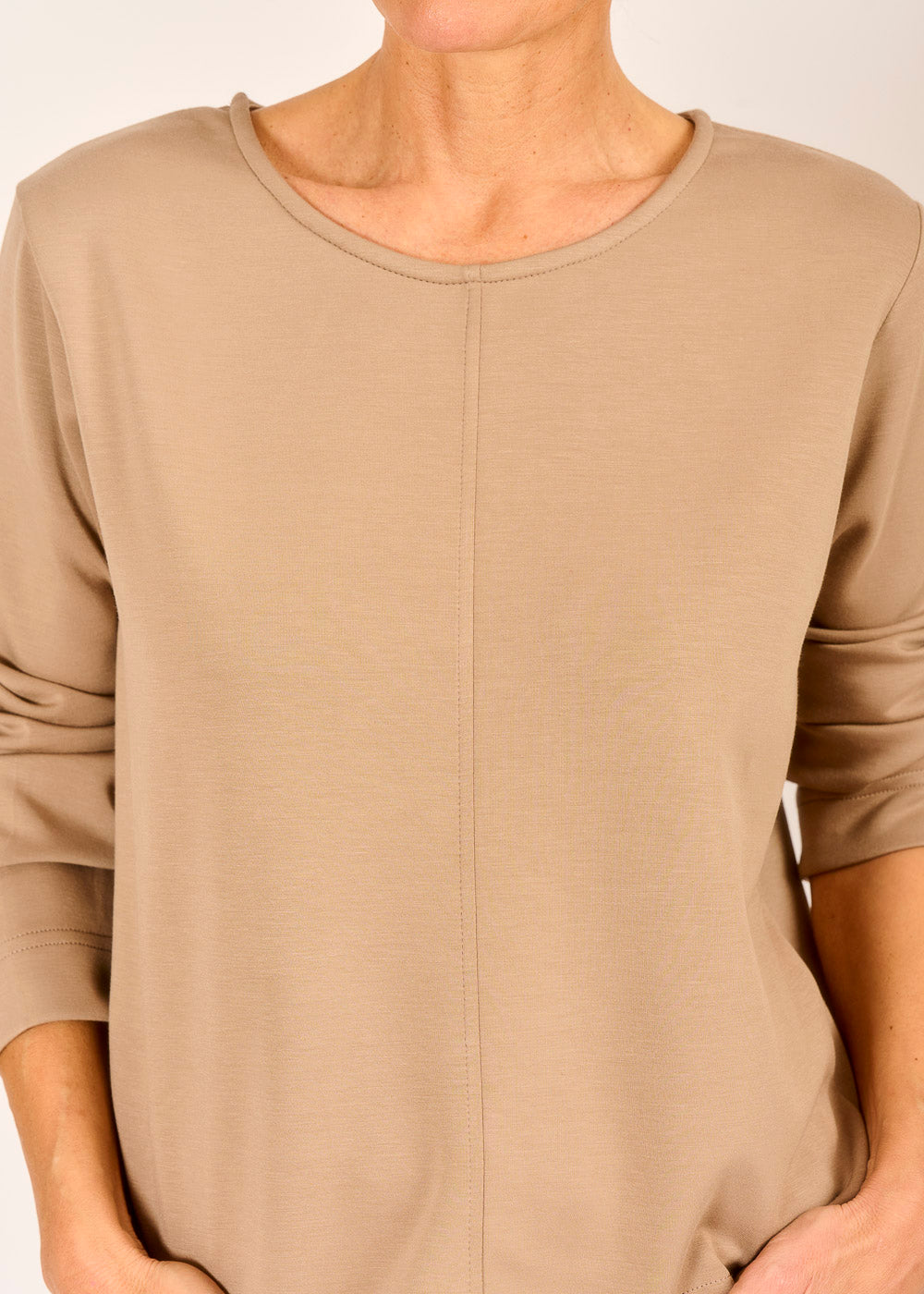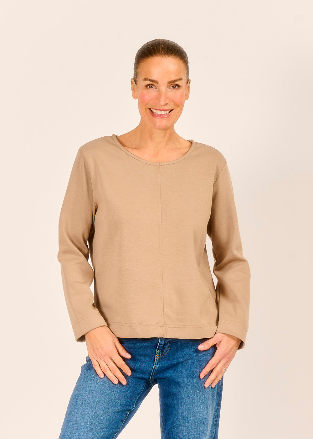 Produkthighlight: Strukturiertes Basic-Shirt. Ein zeitloses Essential, das durch seine reduzierte Eleganz überzeugt und sich nahtlos in jede Garderobe einfügt. Die feine, vertikal verlaufende Mittelnaht ist ein subtiles, aber wirkungsvolles Detail, das dem weichen Material eine schöne Struktur verleiht. Dieses Shirt mit seinem klaren Schnitt ist die perfekte Basis, um Business-Looks zu erden oder lässige Outfits stilvoll abzurunden.