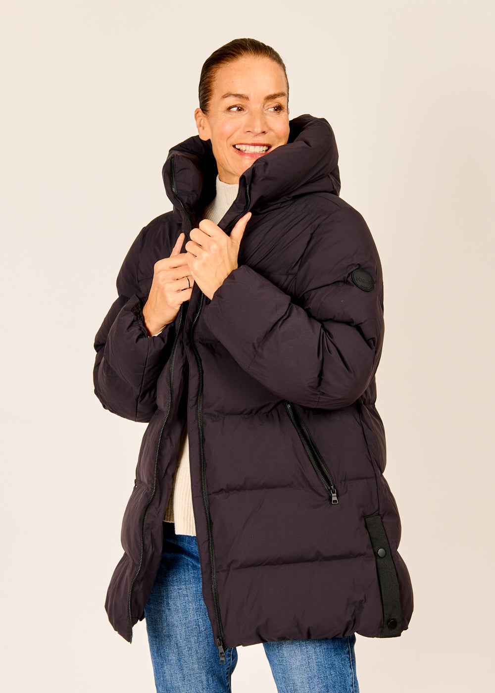 Die COMO No. 1 Stepplongjacke Sutton in elegantem Nero ist eine der wärmsten und dennoch leichtesten Begleiterinnen für die kommende Wintersaison. Ihre vegane, sehr leichte Wattierung hält dich zuverlässig warm, während die normale Passform und der über dem Gesäß endende Schnitt optimalen Tragekomfort bieten. Dank des Zweiwege-Reißverschlusses und der seitlichen Druckknopfleisten lässt sich die Jacke individuell anpassen, was auch beim Fahrradfahren für mehr Beinfreiheit sorgt. Die wattierte Kapuze und die schrägen Eingriffstaschen runden das Design dieses vielseitigen Winter-Essentials perfekt ab.
