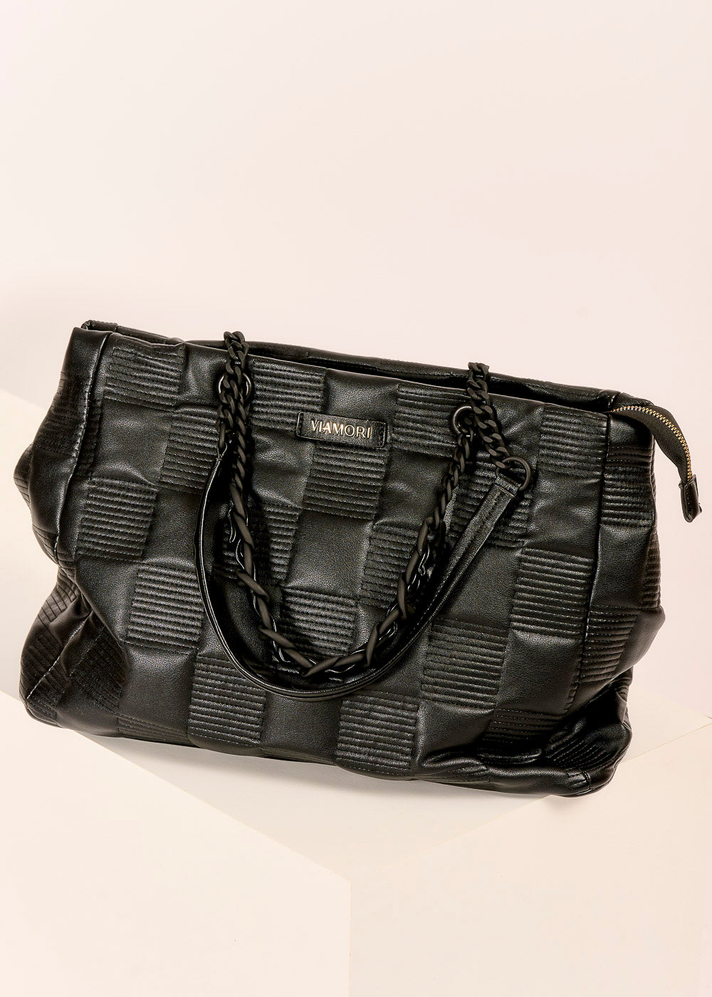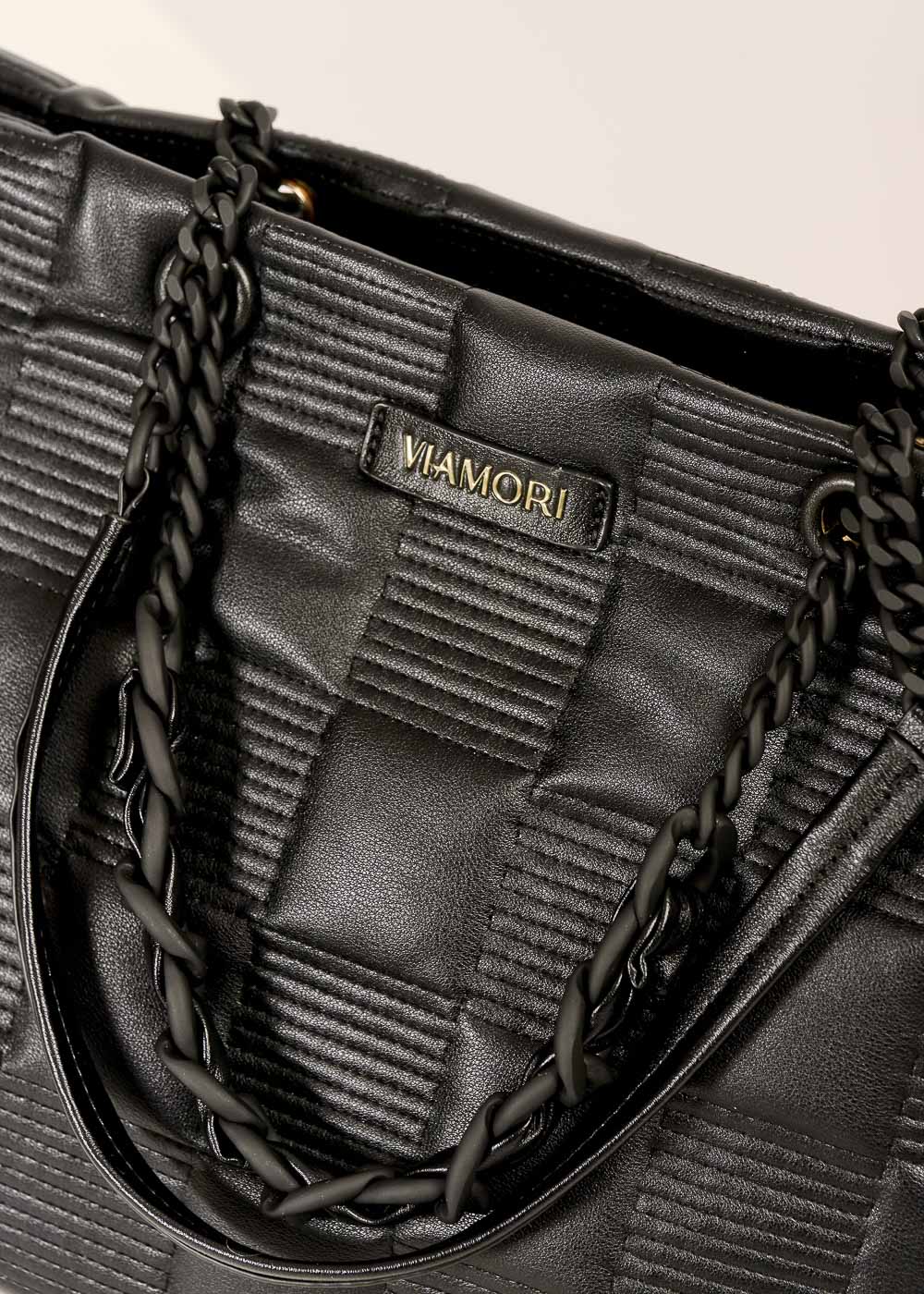 Markantes Statement: Diese schwarze Tasche besticht durch ihr einzigartiges Design und wird zum unverwechselbaren Highlight jedes Outfits. Durchdachte Details, Funktionalität und Ästhetik werden hier mühelos verbunden.