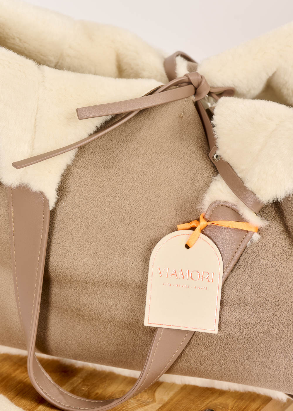 Diese Tasche ist mehr als ein Accessoire – sie ist ein kuscheliges Statement an Tagen, die sich sanft anfühlen sollen. Die harmonisch abgestimmten Farben lassen jeden Look weicher und wärmer wirken. Dabei bietet sie dir genug Platz für alles, was dir wichtig ist.
